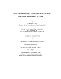 Cultural permanency planning : colonization and its legislative impacts on historical and current trends in Indigenous Child welfare practice