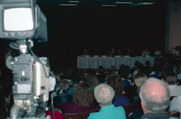 Audience members at public hearing/info session on Oct 10, 1990, hosted by the Fraser Valley Access Consultation Group, a group created by Advanced Education Minister Bruce Strachan and chaired by former MLA Harvey Schroeder. Their mandate was to make rec